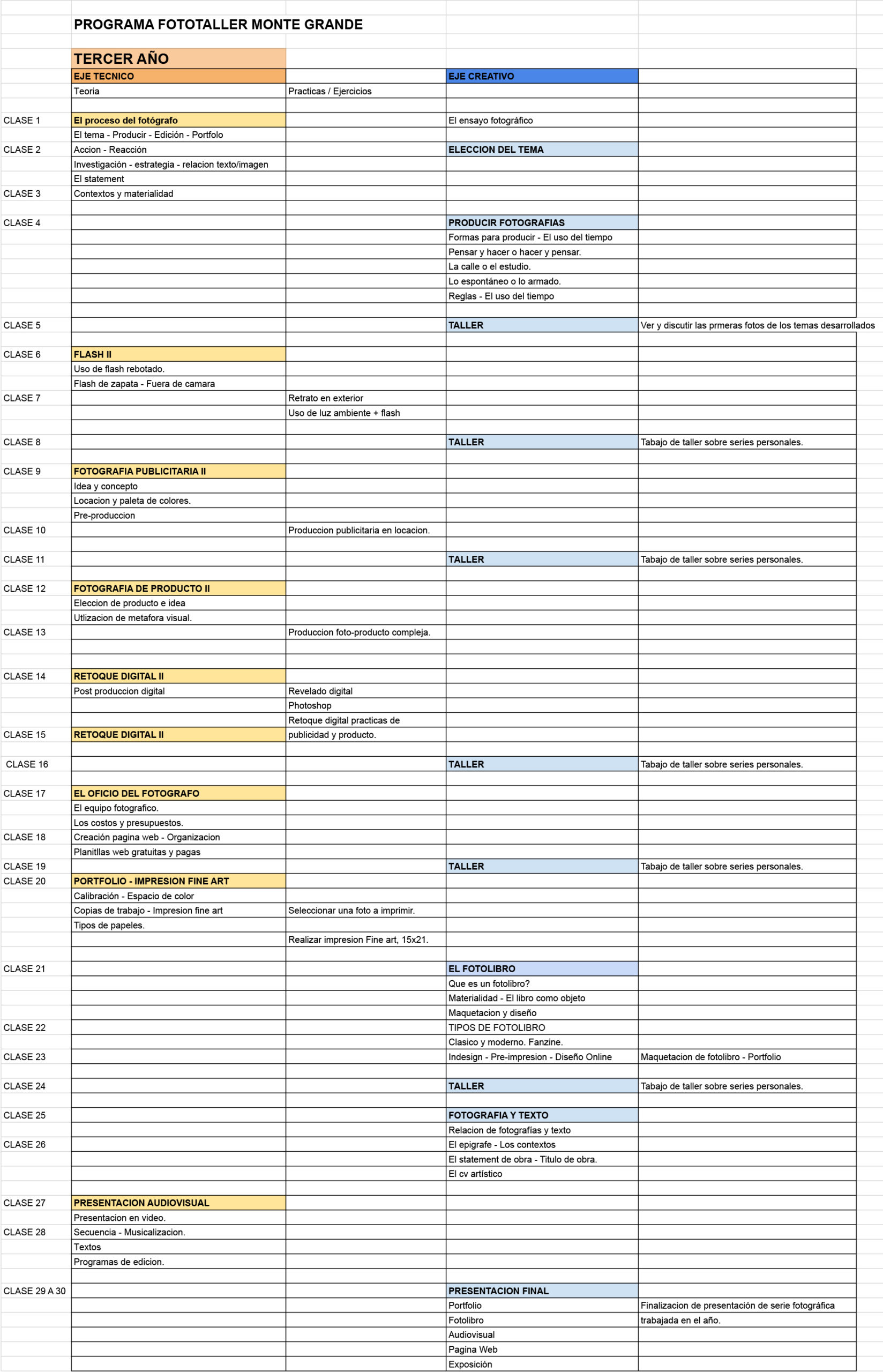 En los talleres de tercer año abordamos lo que llamamos el «proceso» del fotógrafo.